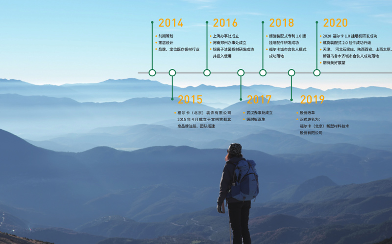 福爾卡新型材料公司介紹:福爾卡(北京)新型材料技術股份有限公司,2015年4月成立于文明古都北京,是一家專注醫療板材解決方案的提供商。國內提出一、三、十五、四十五優良交貨體系。即:福爾卡醫而耐板成品墻面一站式優良服務,現貨供應國內3天物流到達,非常規產品十五天送達,每2000平米醫耐板成品面四十五天內合格交何完成。福爾卡公司在北京、上海、河南鄭州、湖北武漢分別設立辦事處及加工中心,以就近服務的原則...